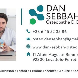 Dan SEBBAH, ostéopathe D.O., vous reçoit dans son cabinet à Levallois-Perret pour des consultations adaptées aux adultes, nourrissons, enfants, sportifs, seniors, femmes enceintes et jeunes mamans en post-partum. Des consultations à domicile sont également possibles.